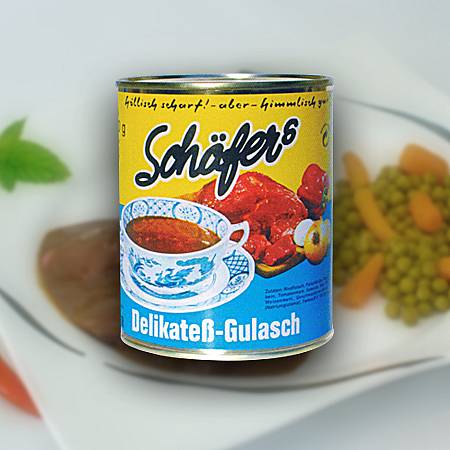 Zubereitung: Dieses Gericht ist tafelfertig. Den Doseninhalt nur kurz erhitzen, bitte nicht kochen. Servieren als Beilage zu Kartoffeln, Klößen oder Spaghetti. Als Krüstchen-Gulasch mit Brot - verdünnbar mit 20% Wasser.