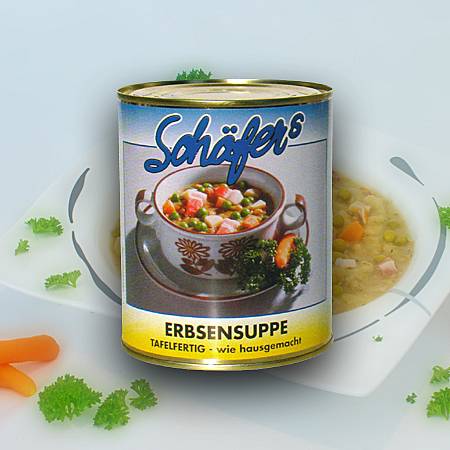 Erbsen, Kartoffeln, Rauchspeck mit Nitritpökelsalz, Möhren, Zwiebeln, Weizenmehl, Salz.