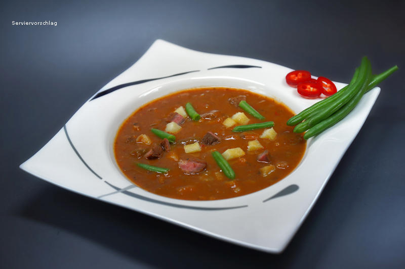 Kartoffeln, Paprika, Grüne Bohnen, Bratzwiebeln, Tomatenmark,